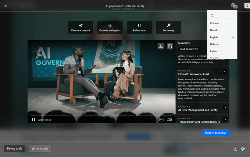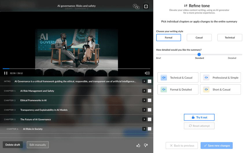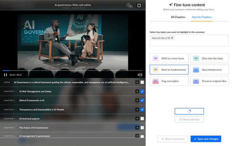 Increase platform engagement by providing users with richer, clearer, and more structured content through automated chapters and summaries.